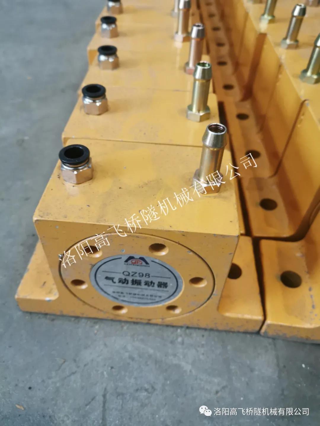 臺(tái)車配置8個(gè)插入式和32個(gè)附著式高頻自動(dòng)振搗系統(tǒng),通過(guò)高壓氣體帶動(dòng)高頻氣動(dòng)振搗器工作,作業(yè)人員可通過(guò)PLC 程序控制持續(xù)振搗時(shí)間、間隔時(shí)間、振動(dòng)次數(shù)。拱部插入式振搗系統(tǒng)通過(guò)插入式高頻振動(dòng)器的往復(fù)運(yùn)動(dòng),對(duì)拱部混凝土深部進(jìn)行充分振搗,實(shí)現(xiàn)環(huán)向、縱向及厚度方向的振搗全覆蓋,有效提升混凝土強(qiáng)度和密實(shí)度,可以從根本上解決隧道拱頂混凝土不密實(shí)導(dǎo)致脫空和空洞的難題。高頻氣動(dòng)振動(dòng)器,振動(dòng)范圍廣、深度大,使混凝土振搗密實(shí),整體提升隧道襯砌外觀質(zhì)量。